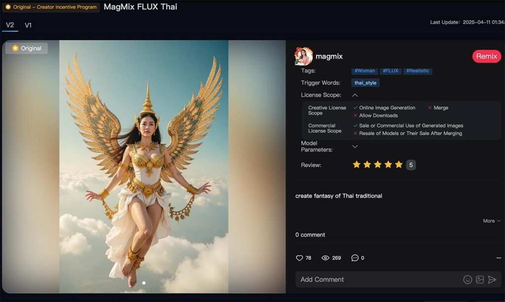 เจนรูป MagMix FLUX Thai V2 ฟรีได้ที่ SeaArt